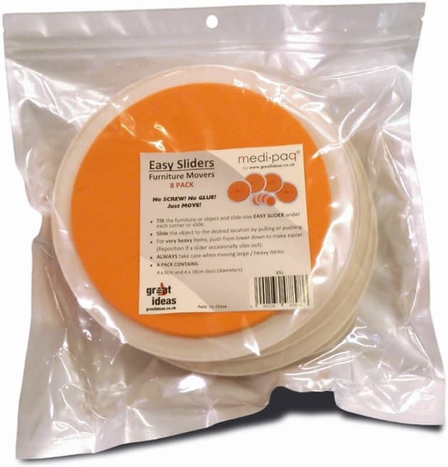 Make light work of moving heavy furniture. 4 large and 4 small sliders fit under furniture feet.